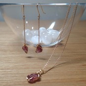 ナイジェリア産のロードライトガーネットの原石を使ったピアスとネックレスのセットです。